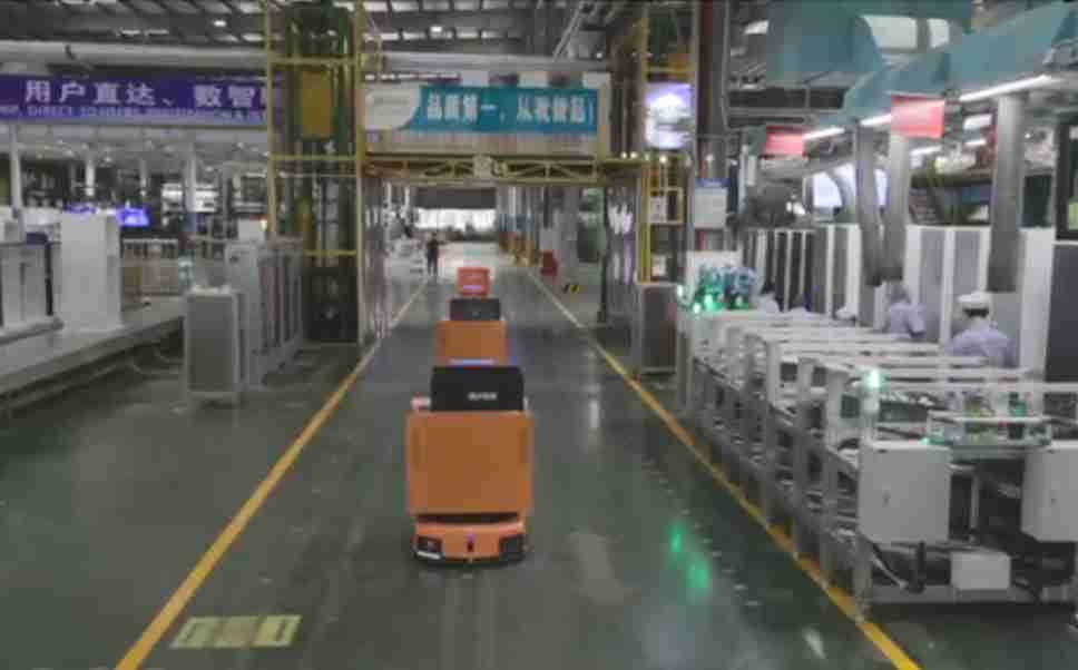 为车载冰箱物流配送打造的智能解决方案,,包含产中物流通过潜伏举升AMR搬运至线边,,产后成品物流智能仓储,,,流程包含产中物流智能齐套入库,,线边安灯叫料AMR智能配送至线边,,,,成品入库、、、、出库,,,,通过无人堆高车机器人,,,智能仓储管理替代人工作业管理,,,,实现更高存储、、更高效率、、、、更具柔性化的解决方案。。。